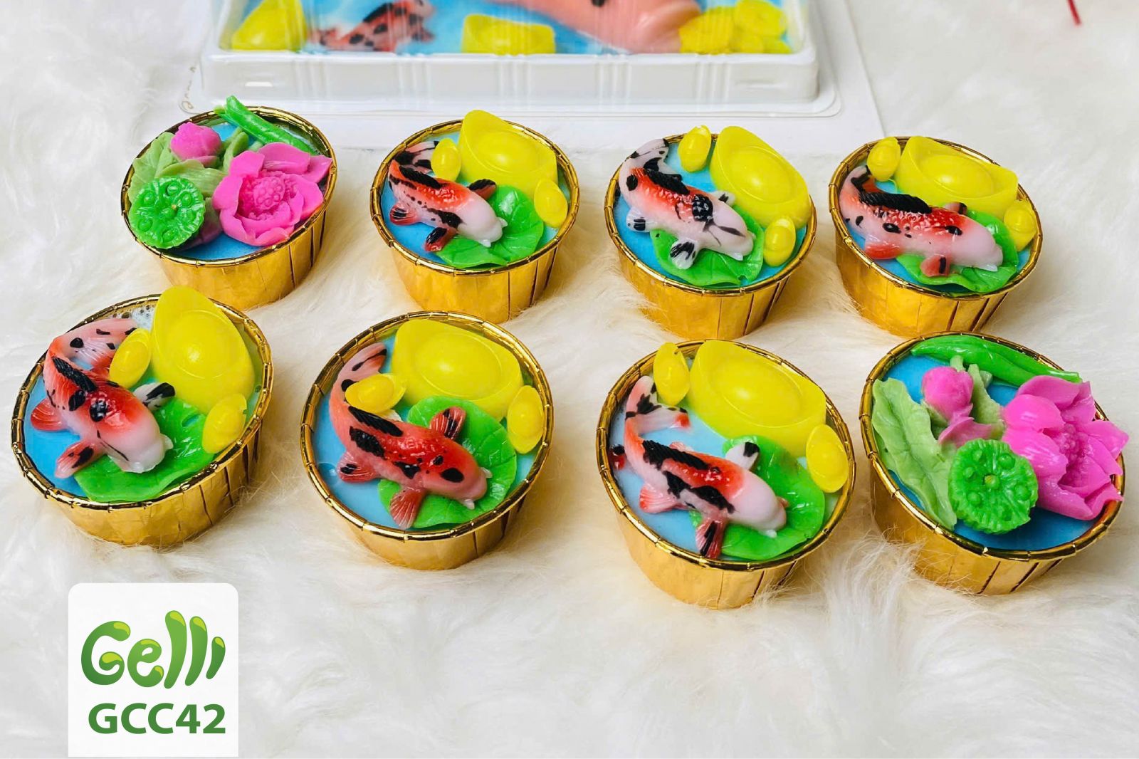 Bánh rau câu cupcake cá chép cúng Ông Táo GCC42 của Gelli – tạo hình tinh xảo, mát lành, ý nghĩa tài lộc. Phù hợp mâm cúng 23 tháng Chạp, giao hàng tiện lợi. Hotline: 0909599151