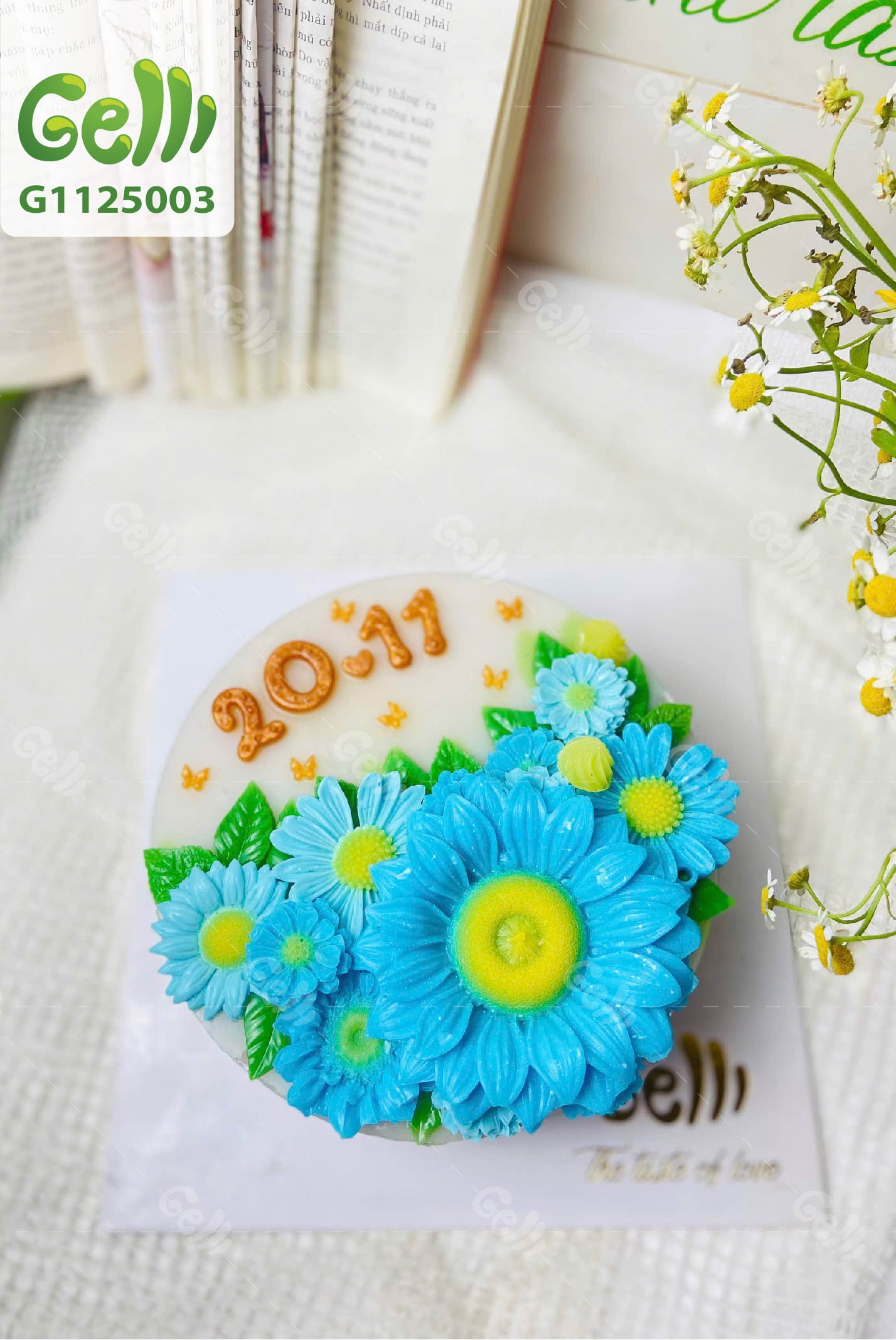 Mẫu bánh rau câu 4D G1125003 “Trời Hoa Tri Ân” với hoa xanh nổi bật, nhân flan dừa tươi thơm mát. Quà tặng 20/11 ý nghĩa dành cho Thầy Cô. Đặt thiết kế theo yêu cầu tại Gelli.