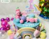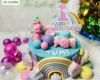 Chiếc bánh là một thế giới cổ tích thu nhỏ: có cầu vồng pastel dịu nhẹ, có kẹo ngọt, có macaron, thú bông và hộp quà nhỏ xinh. Bé yêu nào nhìn thấy cũng phải “ồ à” vì quá đáng yêu! Màu sắc tươi sáng, bố cục đáng yêu và tạo hình an toàn cho trẻ – là điểm cộng lớn khi cha mẹ chọn bánh cho bé.