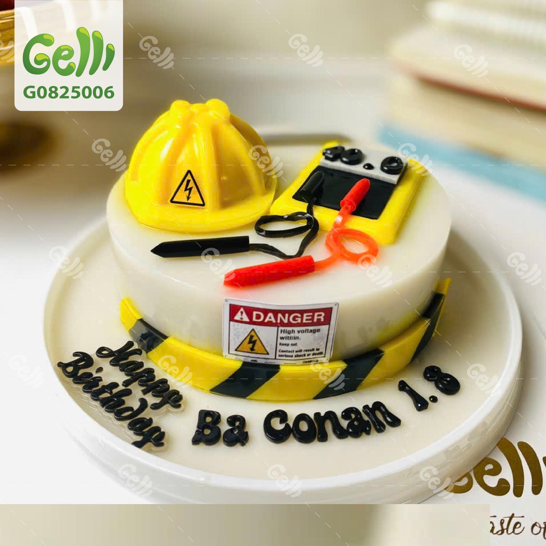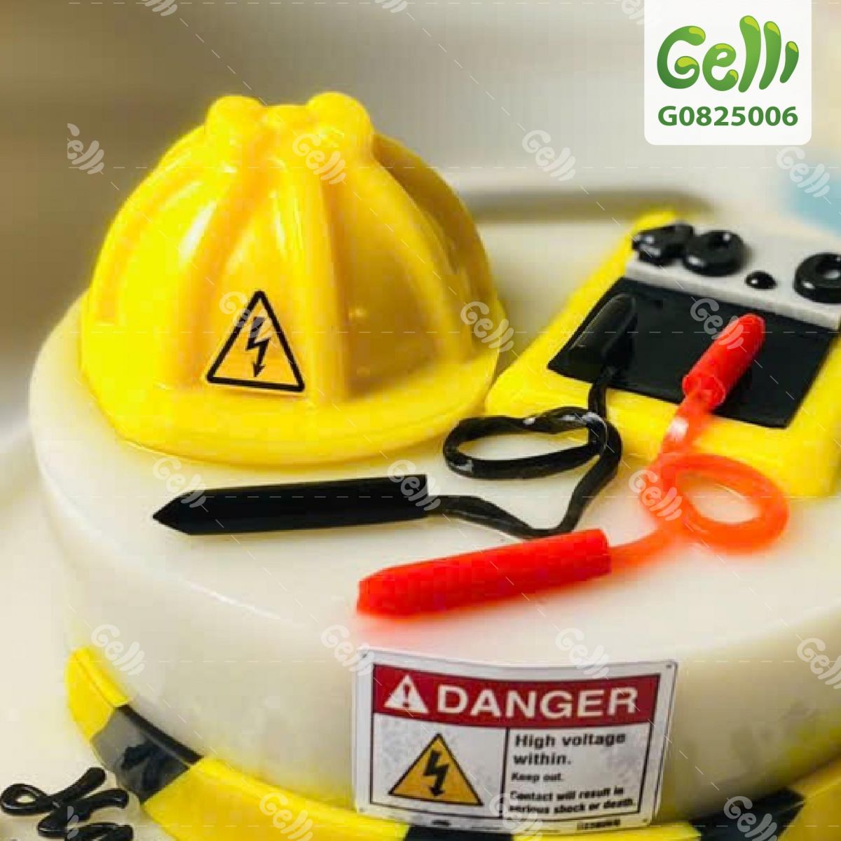 Khám phá mẫu bánh sinh nhật rau câu ngành điện với mũ bảo hộ, đồng hồ điện và cảnh báo điện áp – món quà độc đáo, ý nghĩa cho người thợ điện.