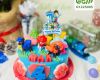 Tông màu xanh – đỏ – vàng nổi bật giúp chiếc bánh trở nên bắt mắt ngay từ cái nhìn đầu tiên. Sự kết hợp hài hòa giữa màu sắc và tạo hình khiến chiếc bánh không chỉ là món tráng miệng mà còn là điểm nhấn trang trí hoàn hảo cho bàn tiệc sinh nhật của bé.