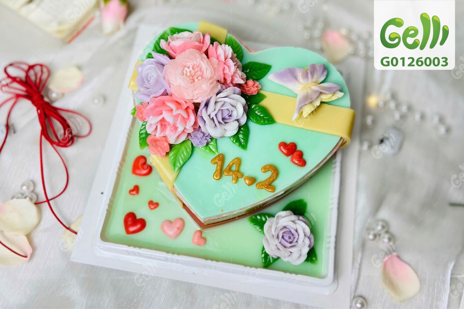 Bánh Sinh Nhật Rau Câu Trái Tim Hoa Pastel Tặng 14/2 - Gelli - G0126003