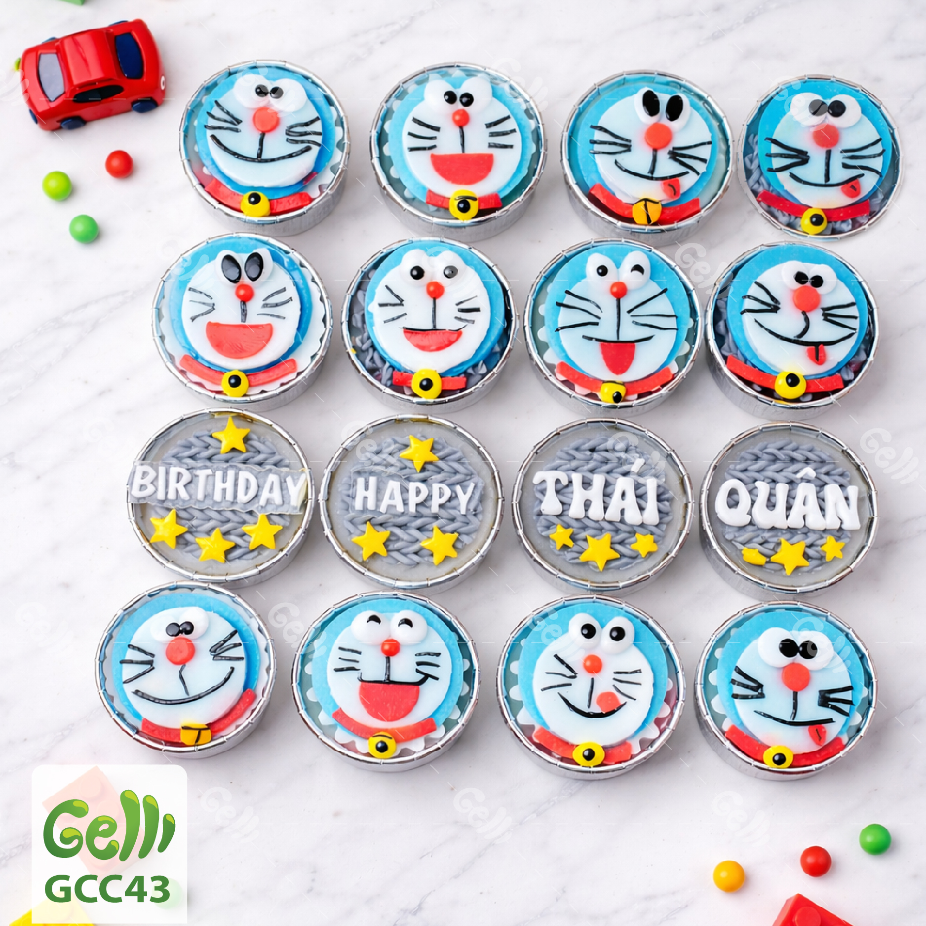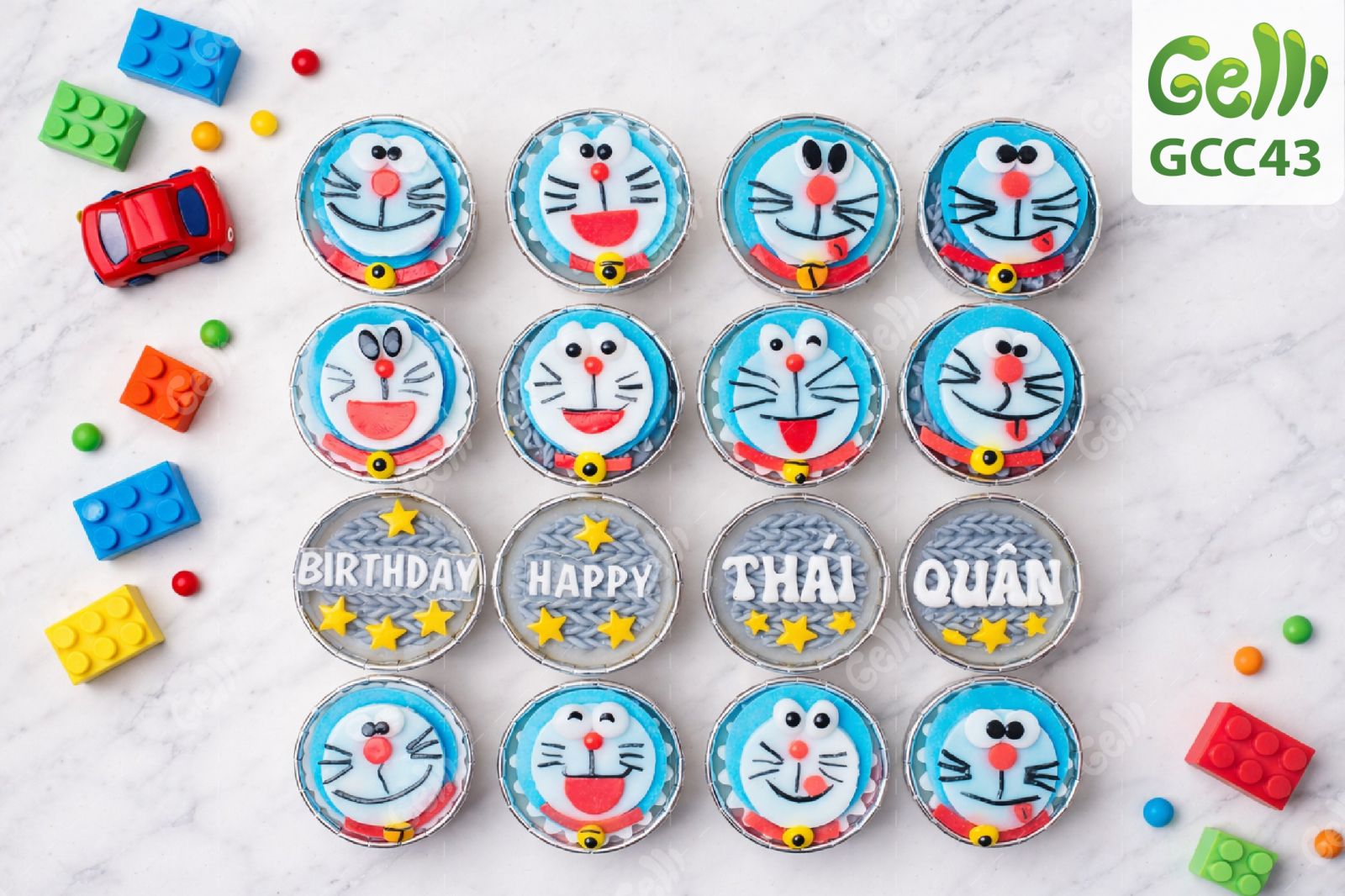 Set 16 Bánh Rau Câu Cupcake Doraemon Dễ Thương Sinh Nhật Bé - Gelli - GCC43
