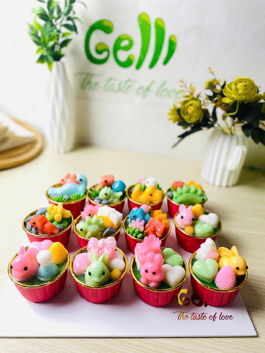Set bánh rau câu cupcake vườn thú với nhiều loài động vật hoang dã khác nhau như: voi, hổ, sư tử, hươu cao cổ, doremon, gấu, thỏ... phù hợp cho tiệc sinh nhật các bé ở độ tuổi mầm non, cấp 1.
